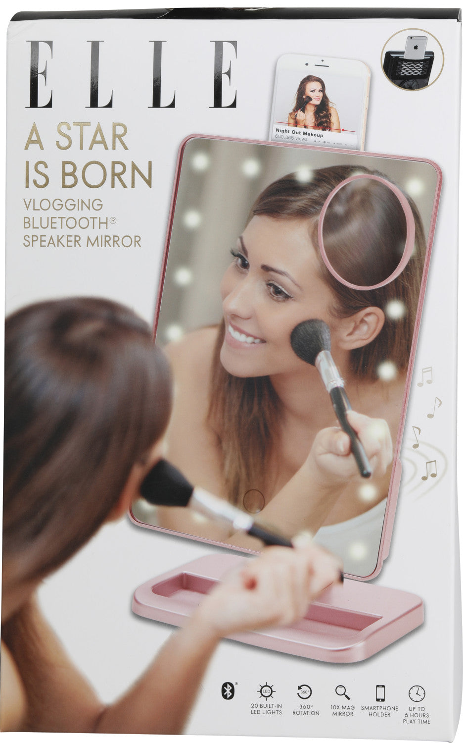 Get red-carpet ready with the Elle Vlogging Bluetooth Speaker Mirror. This mirror with its 20 LED lights, 360° rotation, Bluetooth Speaker and a 10x magnification is the perfect way to get ready in the morning. Whether you're vlogging or getting ready for a night on the town, this mirror will hold your phone as you do your makeup or record a tutorial. It features 360° rotation and up to 6 hours of music play time.