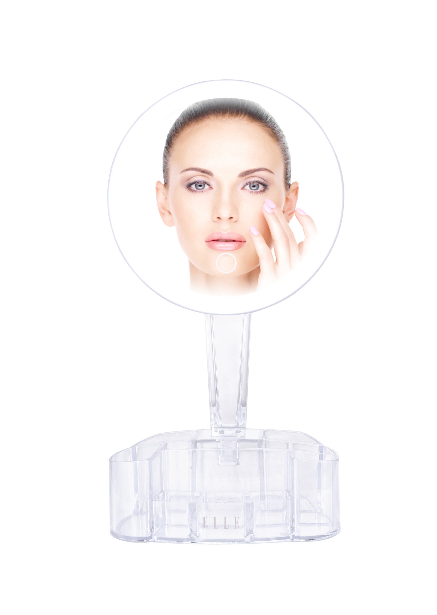Say goodbye to the days of dreading to get ready and make getting ready fun again any time of the day! The Elle LED Light Up Vanity Mirror has bright LED lights and tilts 90 degrees to easily adjust. The makeup organizer base keeps all of your essentials in reach. Touch sensor control allows you to adjust the brightness or turn the LED lights on or off.